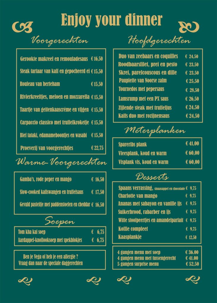 Menu Kaart Diner